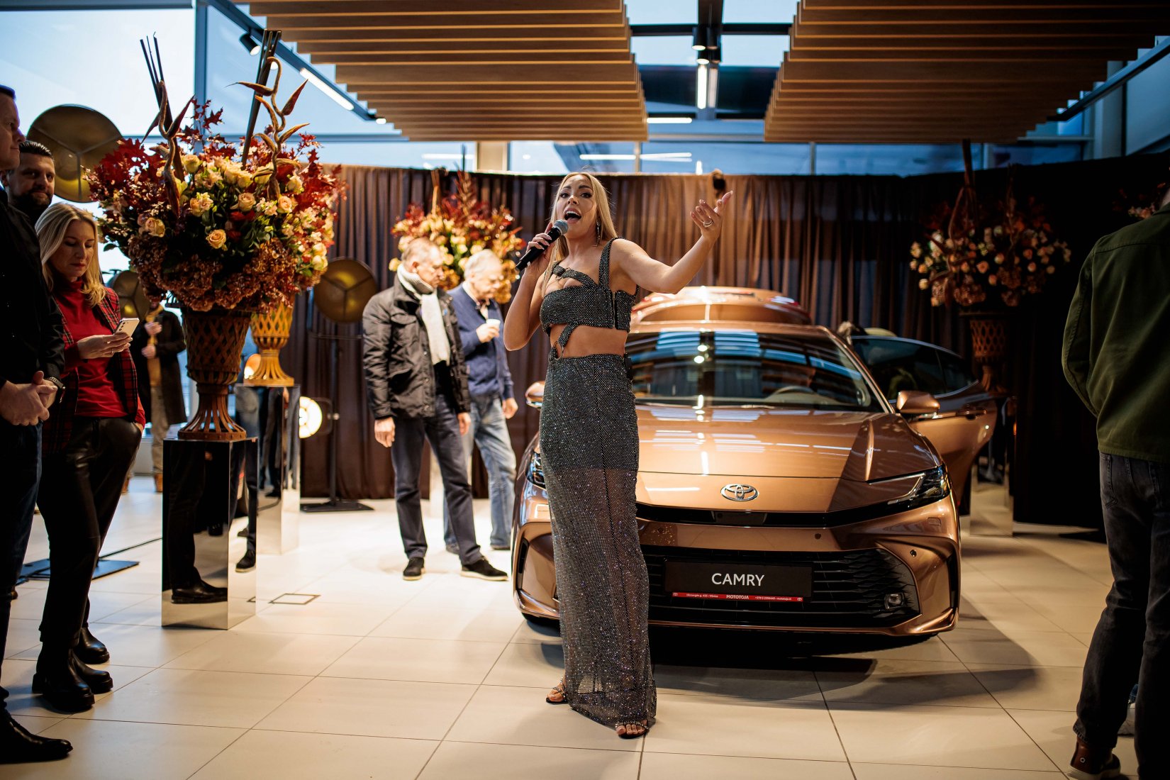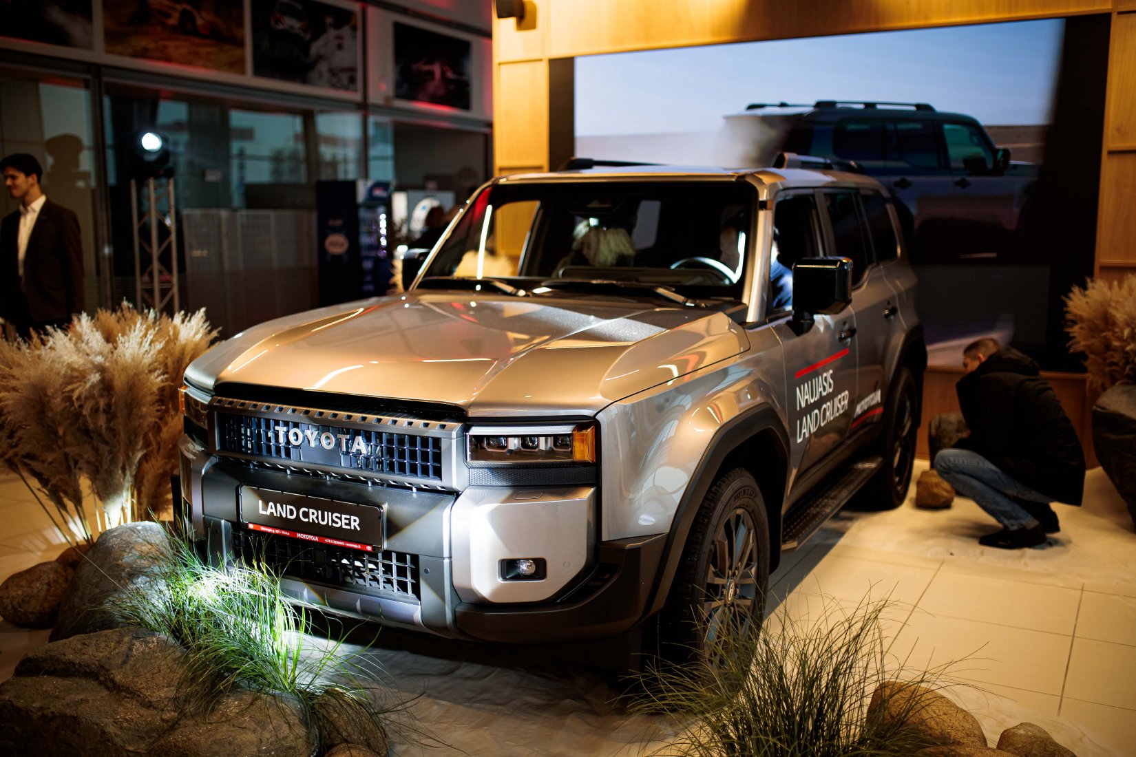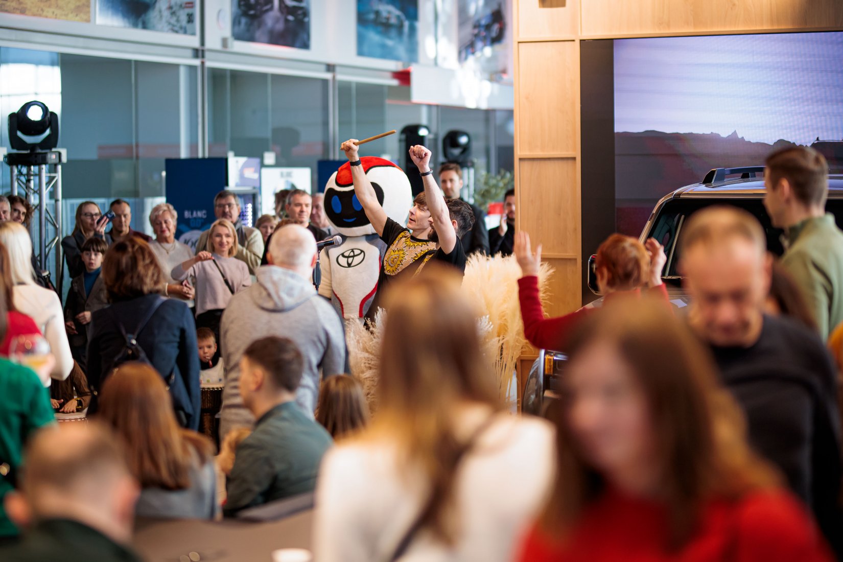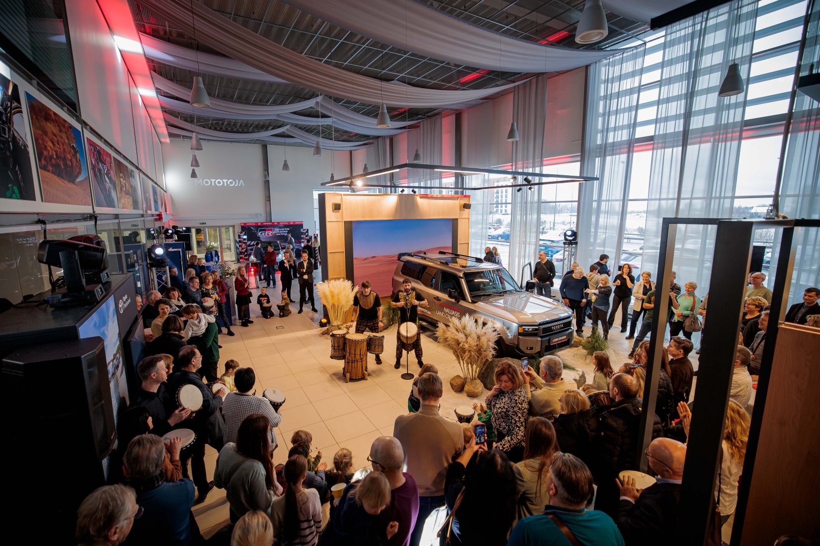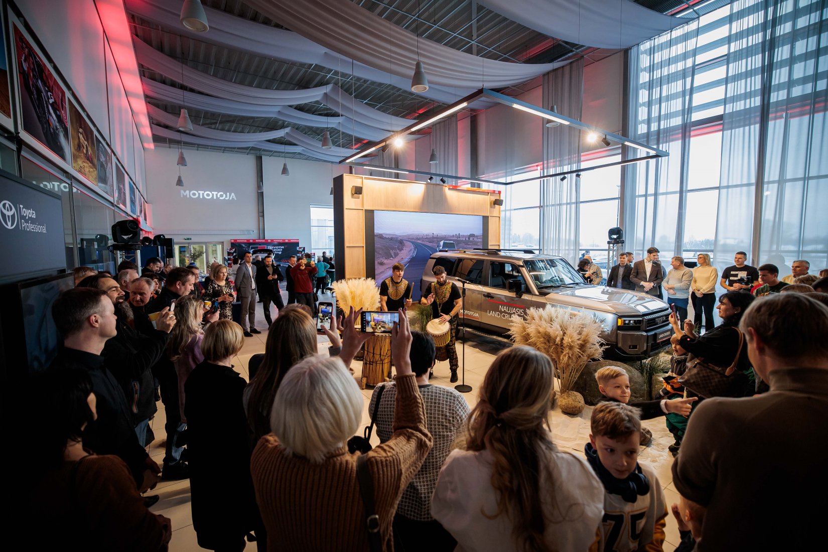 Dalyvius pasitiko įspūdingai dekoruota erdvė ir net trys muzikiniai pasirodymai, suteikę kiekvienam modeliui unikalų pristatymo akcentą. „Toyota Land Cruiser“ buvo pristatytas aidint Afrikos būgnų ritmams, pabrėžiant šio modelio galią ir turtingą istoriją. „Toyota Camry“ eleganciją atskleidė atlikėjos Liepos Mondeikaitės pasirodymas, subtiliai išryškinęs šio automobilio rafinuotumą. Tuo tarpu adrenalino kupinas „Toyota GR Yaris“ buvo pristatytas netikėtai salone pasirodžiusių smuikininkų, vilkinčių lenktyninius kostiumus, kurie perteikė šio modelio sportišką dvasią.