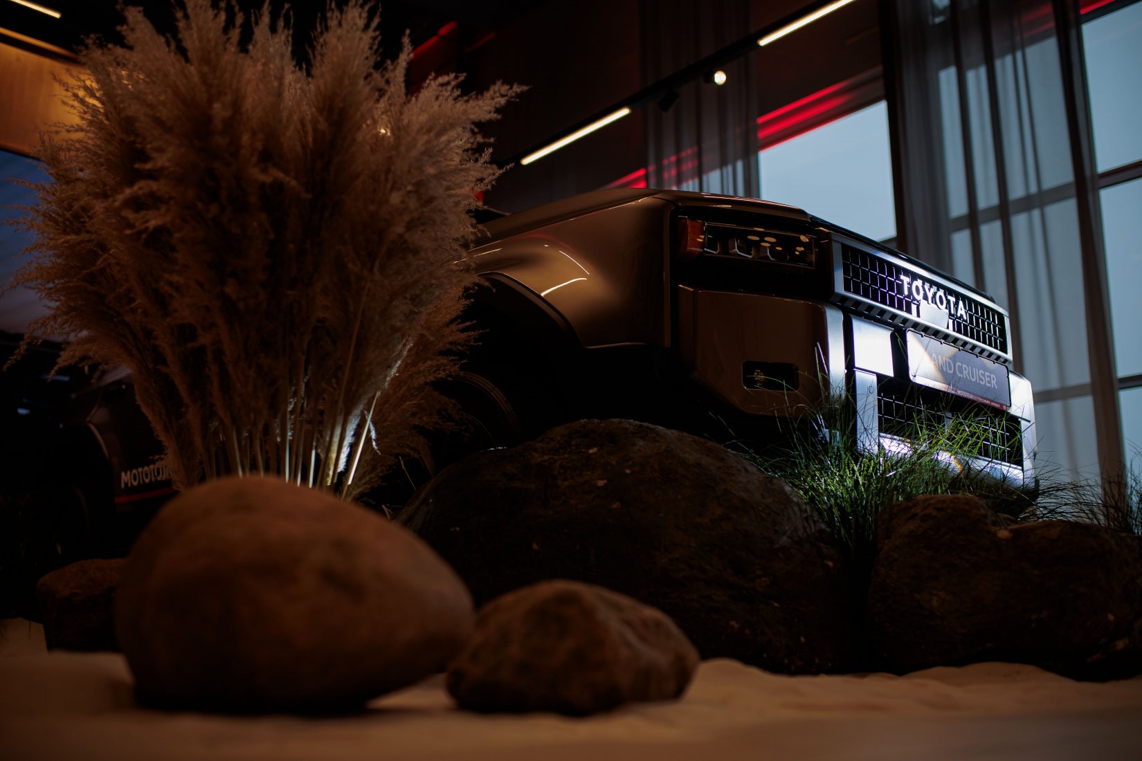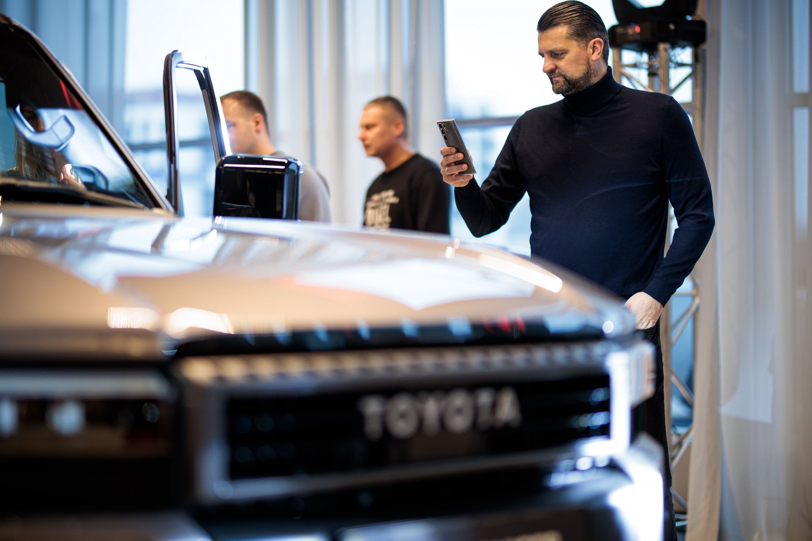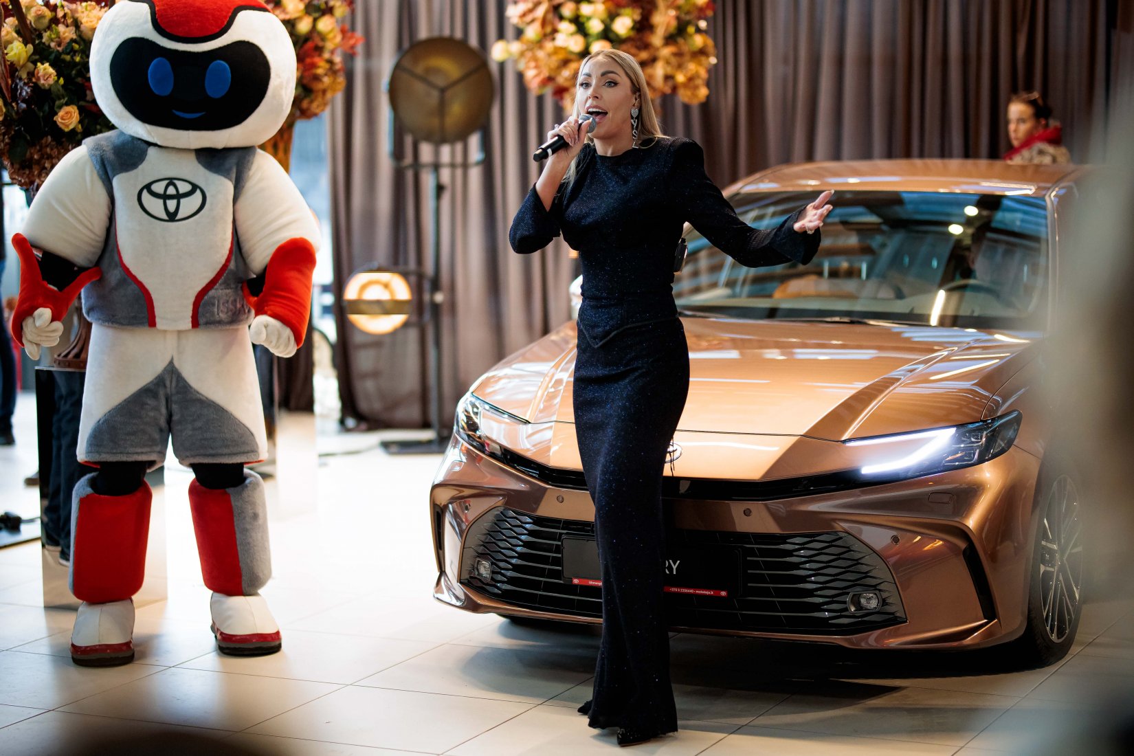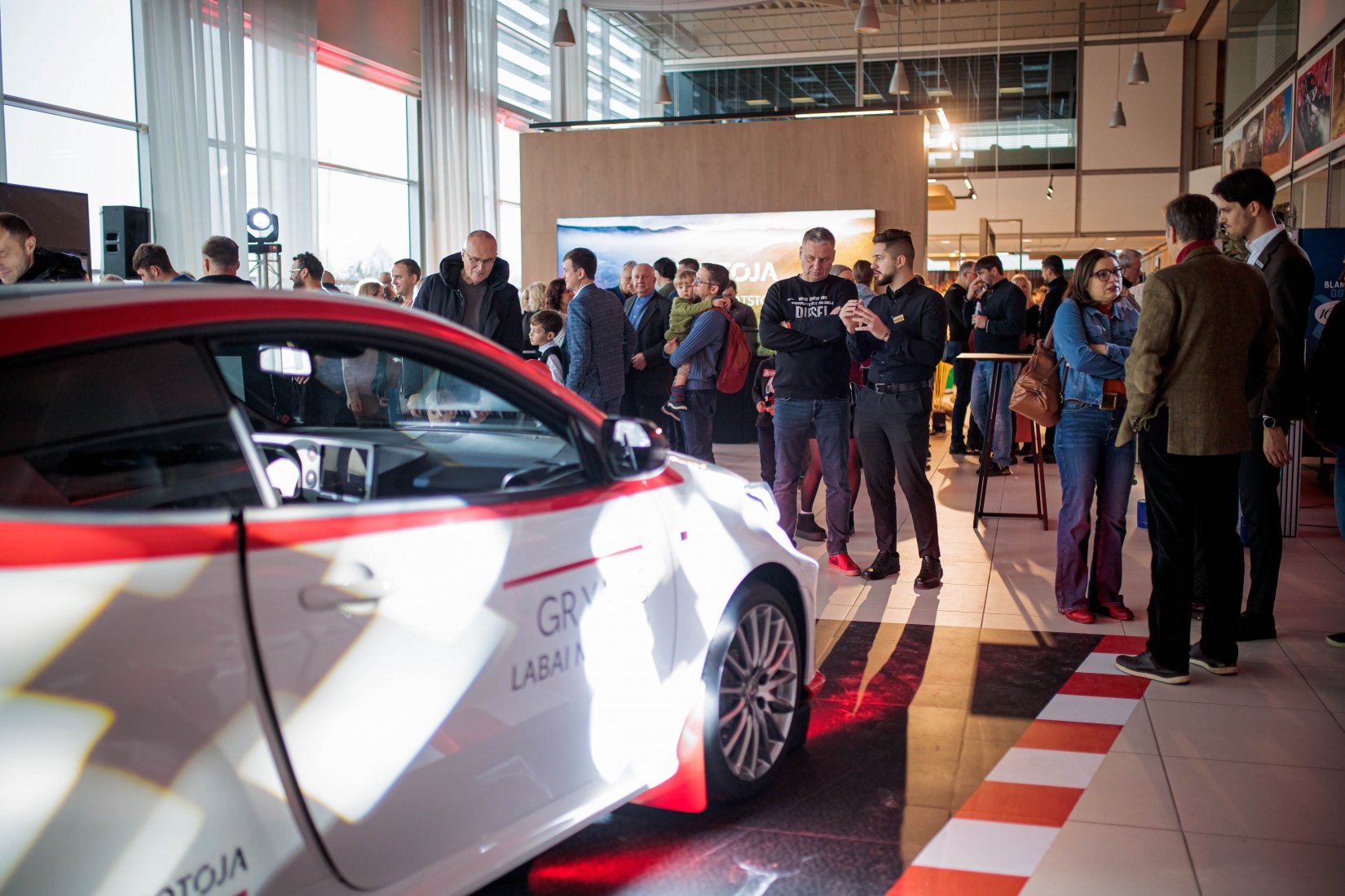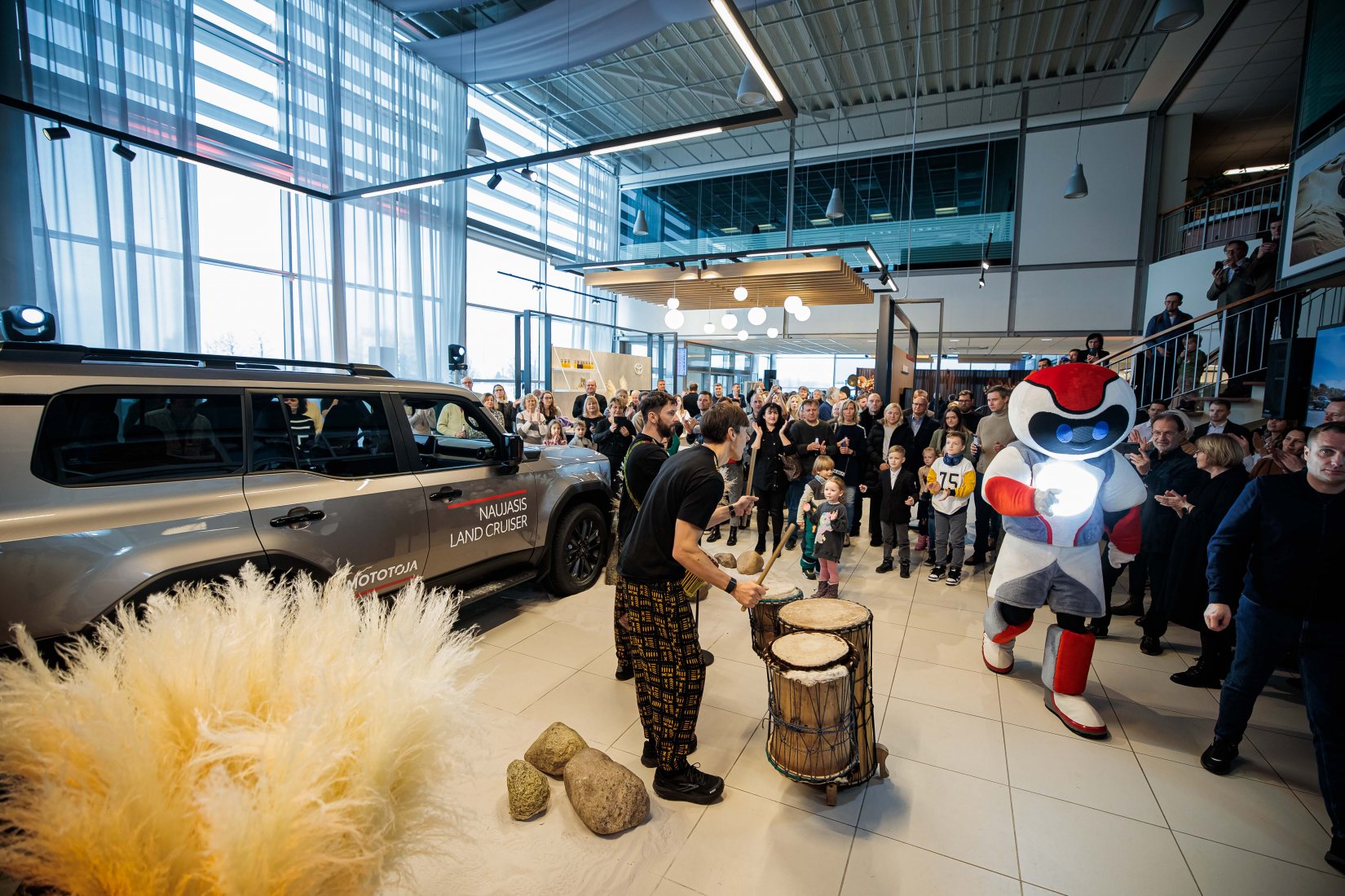 Dalyvius pasitiko įspūdingai dekoruota erdvė ir net trys muzikiniai pasirodymai, suteikę kiekvienam modeliui unikalų pristatymo akcentą. „Toyota Land Cruiser“ buvo pristatytas aidint Afrikos būgnų ritmams, pabrėžiant šio modelio galią ir turtingą istoriją. „Toyota Camry“ eleganciją atskleidė atlikėjos Liepos Mondeikaitės pasirodymas, subtiliai išryškinęs šio automobilio rafinuotumą. Tuo tarpu adrenalino kupinas „Toyota GR Yaris“ buvo pristatytas netikėtai salone pasirodžiusių smuikininkų, vilkinčių lenktyninius kostiumus, kurie perteikė šio modelio sportišką dvasią.