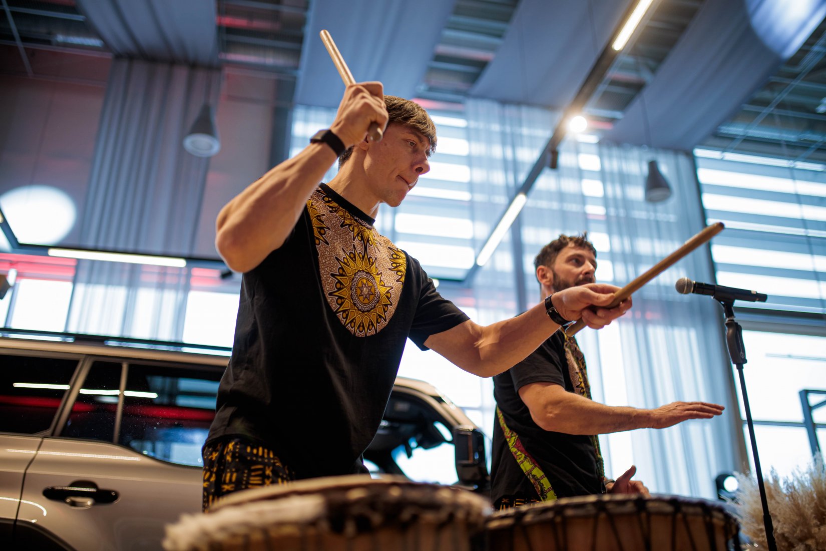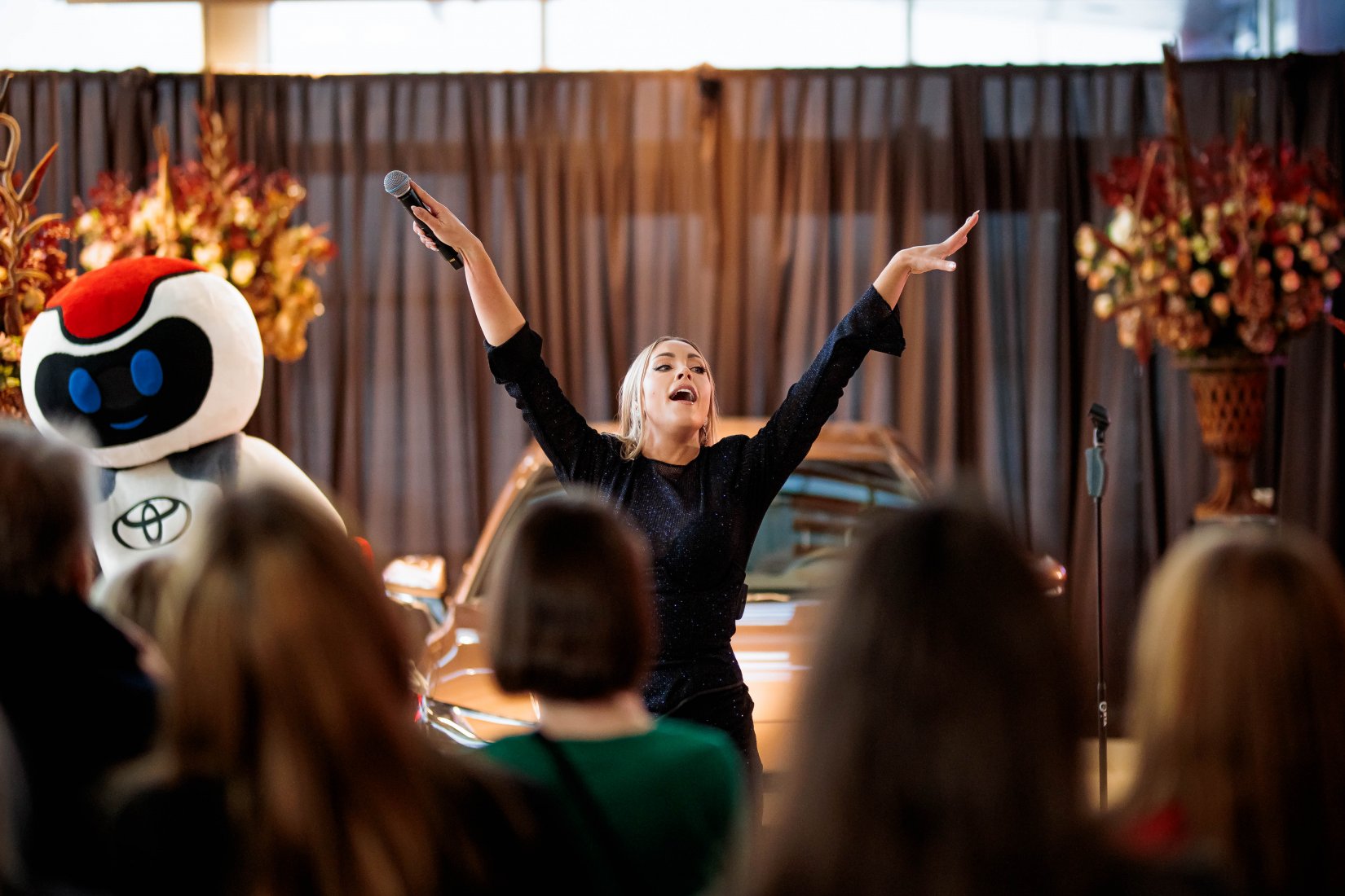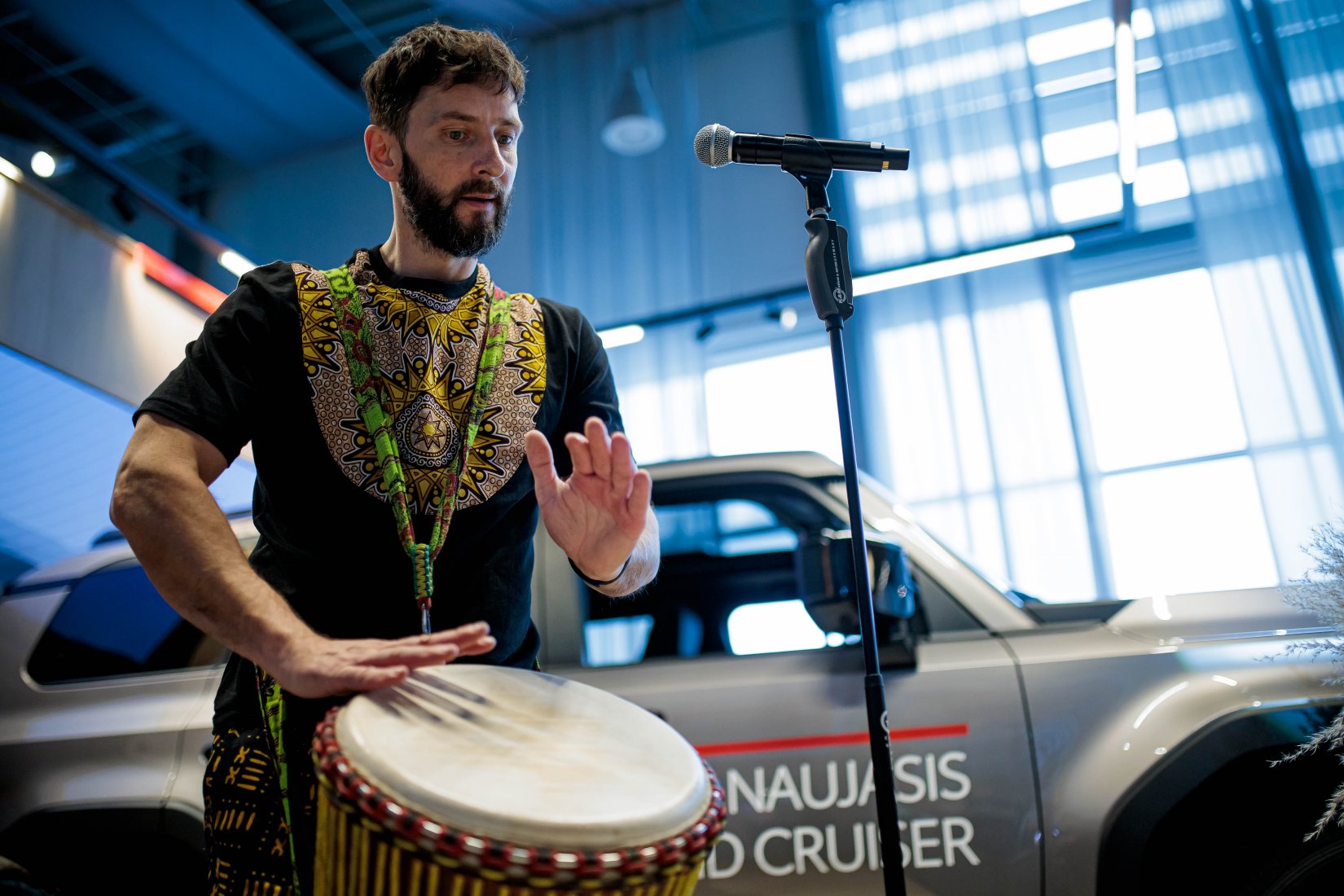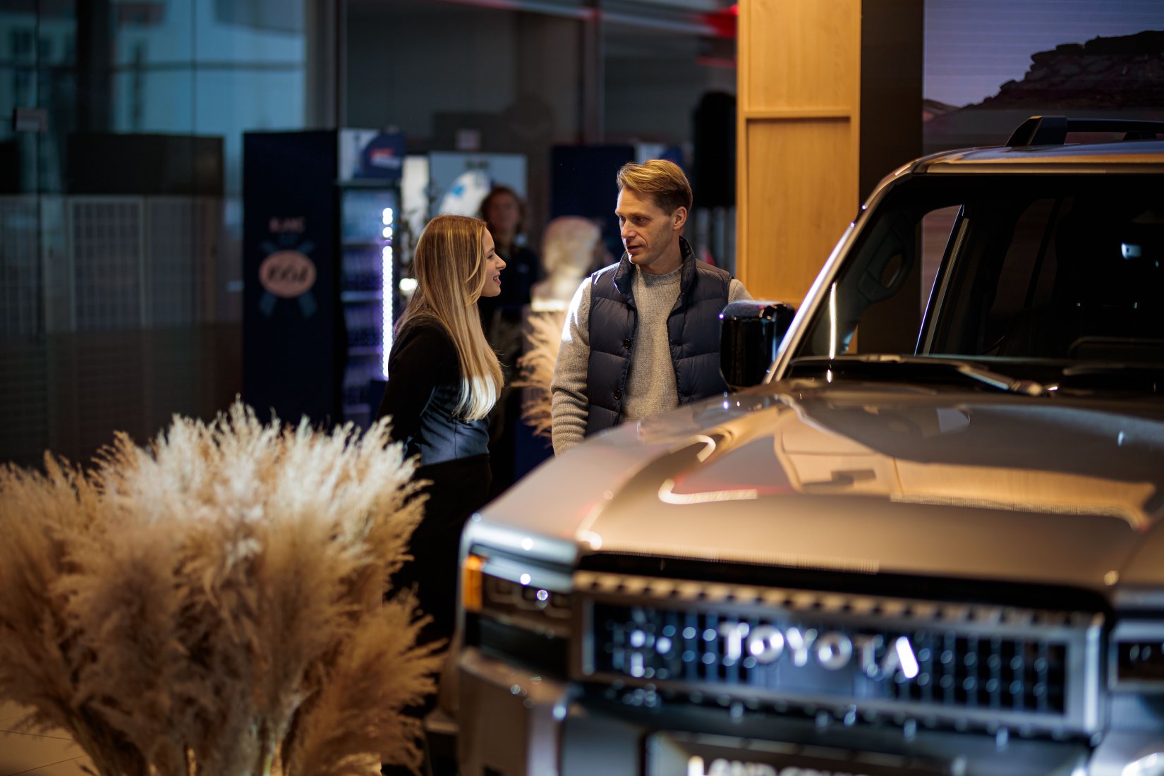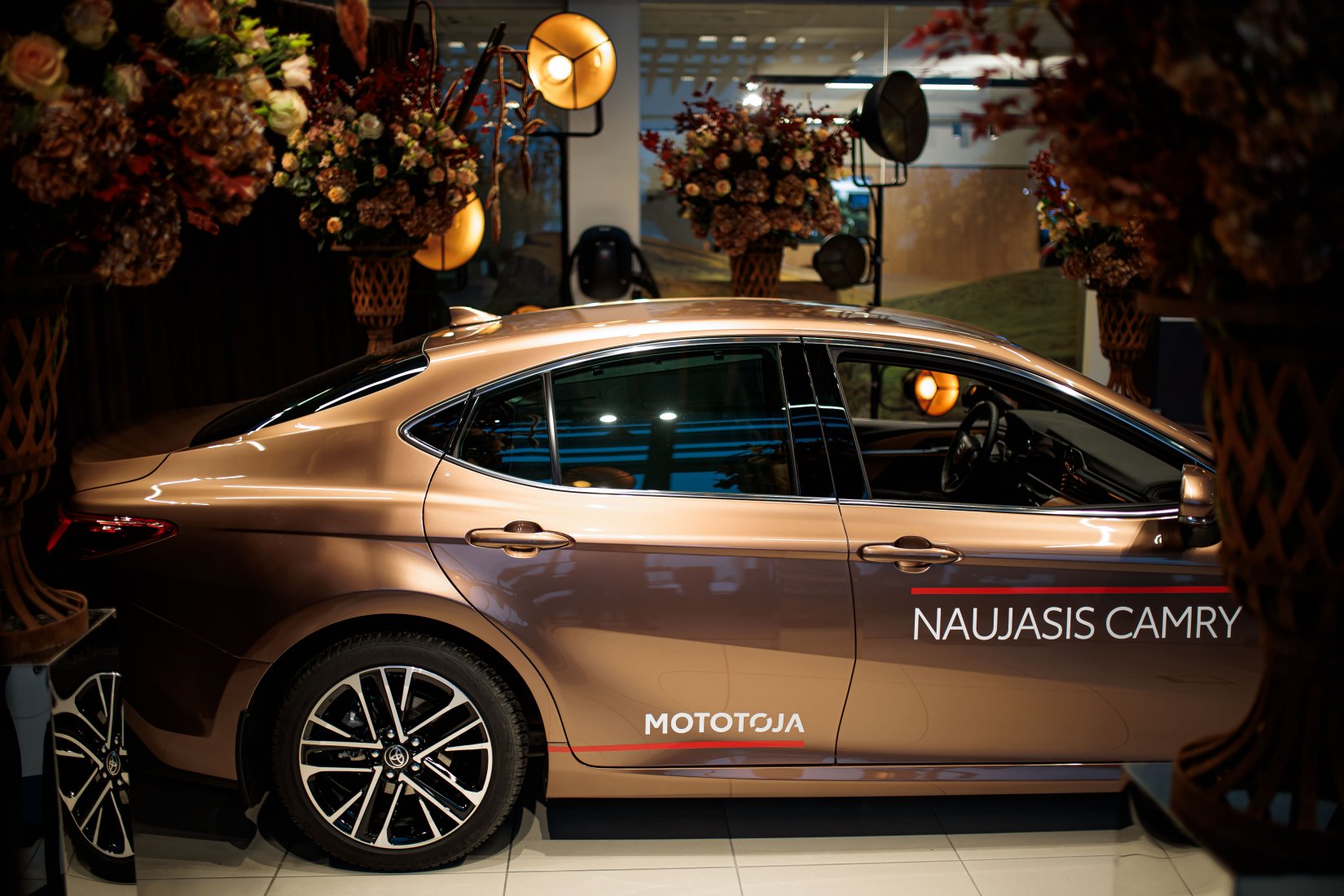 Dalyvius pasitiko įspūdingai dekoruota erdvė ir net trys muzikiniai pasirodymai, suteikę kiekvienam modeliui unikalų pristatymo akcentą. „Toyota Land Cruiser“ buvo pristatytas aidint Afrikos būgnų ritmams, pabrėžiant šio modelio galią ir turtingą istoriją. „Toyota Camry“ eleganciją atskleidė atlikėjos Liepos Mondeikaitės pasirodymas, subtiliai išryškinęs šio automobilio rafinuotumą. Tuo tarpu adrenalino kupinas „Toyota GR Yaris“ buvo pristatytas netikėtai salone pasirodžiusių smuikininkų, vilkinčių lenktyninius kostiumus, kurie perteikė šio modelio sportišką dvasią.